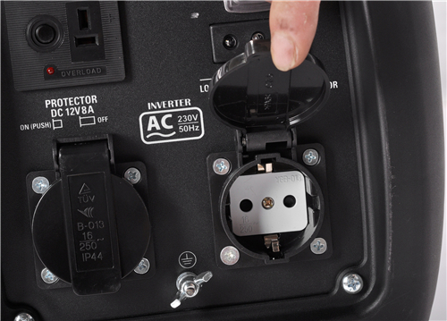 伊藤動力的汽油發(fā)電機控制面板右側有三個指示燈,從左向右依次為機油報警燈、過載保護燈、正常運轉指示燈;節(jié)能開關也在右上角,ON表示轉速在500W以下;OFF表示轉速在500W以上。
