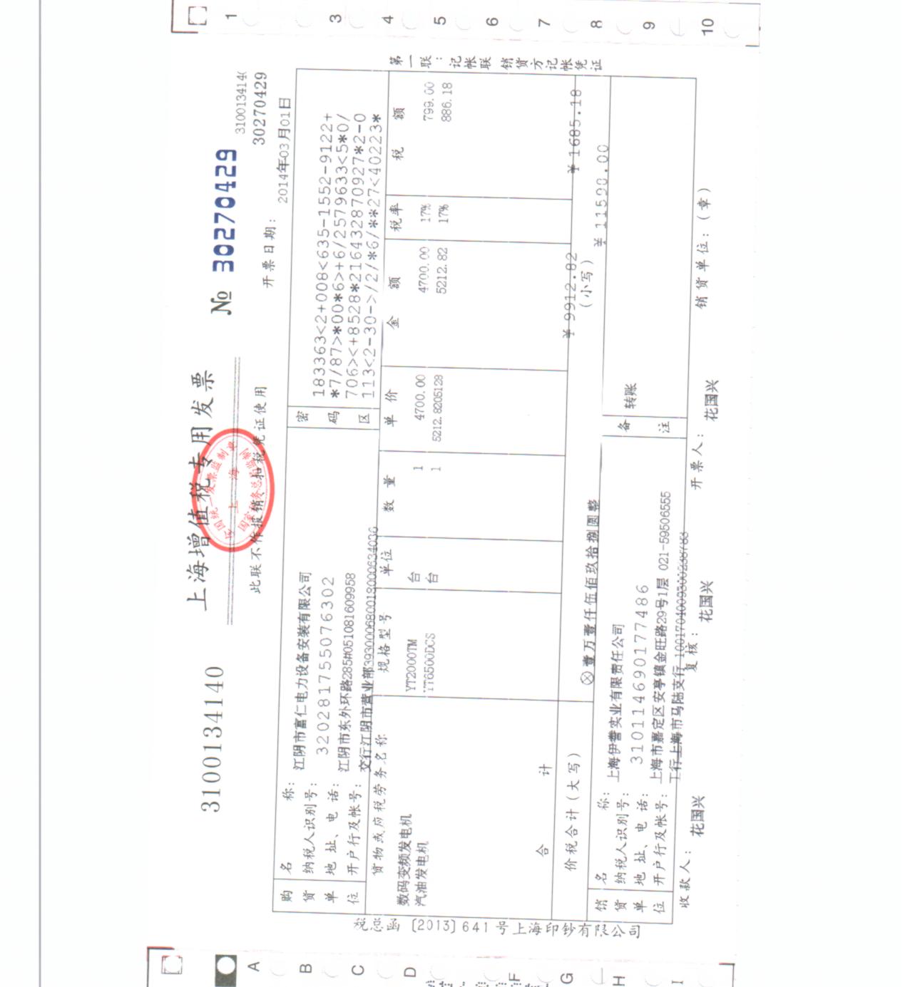 江蘇富仁集團——江陰市富仁電力設備按照有限公司,陶部長 于2014年2月25日在網上看到伊藤發(fā)電機的產品的,當時來了興趣,跟伊藤發(fā)電機的業(yè)務員小汪聯系了起來,要了些資料,但是我們的陶部長真的是一個很細心,很負責任,很謹慎的人,要了資料看了還不頂用,還必須要去廠里看下,因為特殊原因,沒有達成,但是小汪的經理帶了陶部長到伊藤發(fā)電機其中一個庫房去看了現貨,庫房場地很大,在上海這樣一個寸土寸金的地方能有600-900萬的庫房我想足以證明伊藤發(fā)電機的實力了,并且伊藤發(fā)電機在大眾創(chuàng)意園購買一套價值500萬的辦公樓,這些均可以證明伊藤發(fā)電機的實力,果然,2014年2月27日,陶部長及設備部的陳經理來到伊藤發(fā)電機直營店后,28日回到公司,當即定下了合同,28日款項進伊藤發(fā)電機公司賬戶,我把庫房照片分享到伊藤圖冊(很遺憾,應該跟帥帥的陶部長來張合影的)